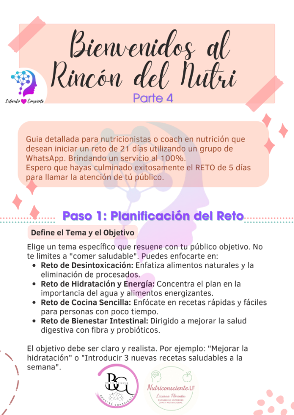 Esta guía está diseñada para que tú, profesional de la nutrición, aprendas a crear y gestionar un reto de 21 días a través de un grupo de WhatsApp. No se trata solo de recetas, sino de tu guía, tu motivación y los resultados que ayudarás a conseguir.